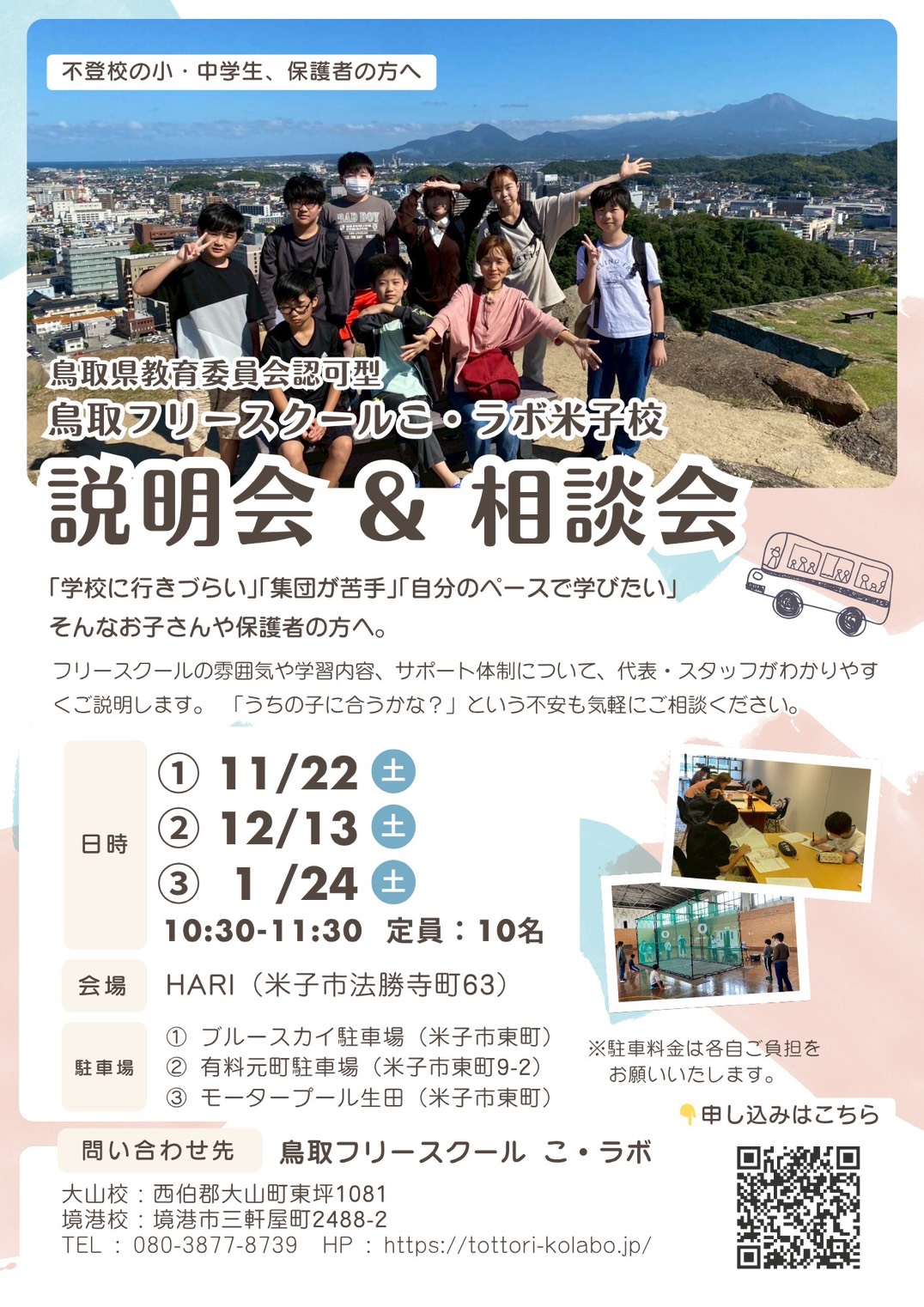🌈 鳥取フリースクールこ・ラボ米子校 説明会&相談会のお知らせ